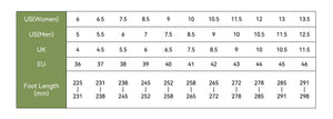 (This chart follows European footwear conversion standards; variations up to ±2mm are normal.)
